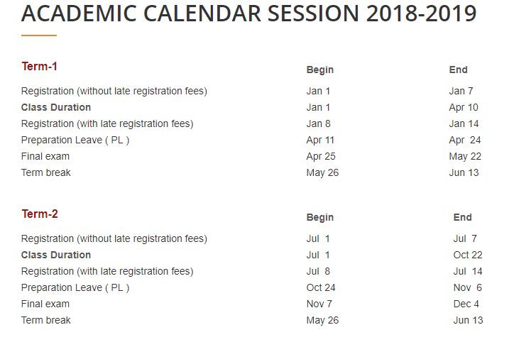 Academic Calendar