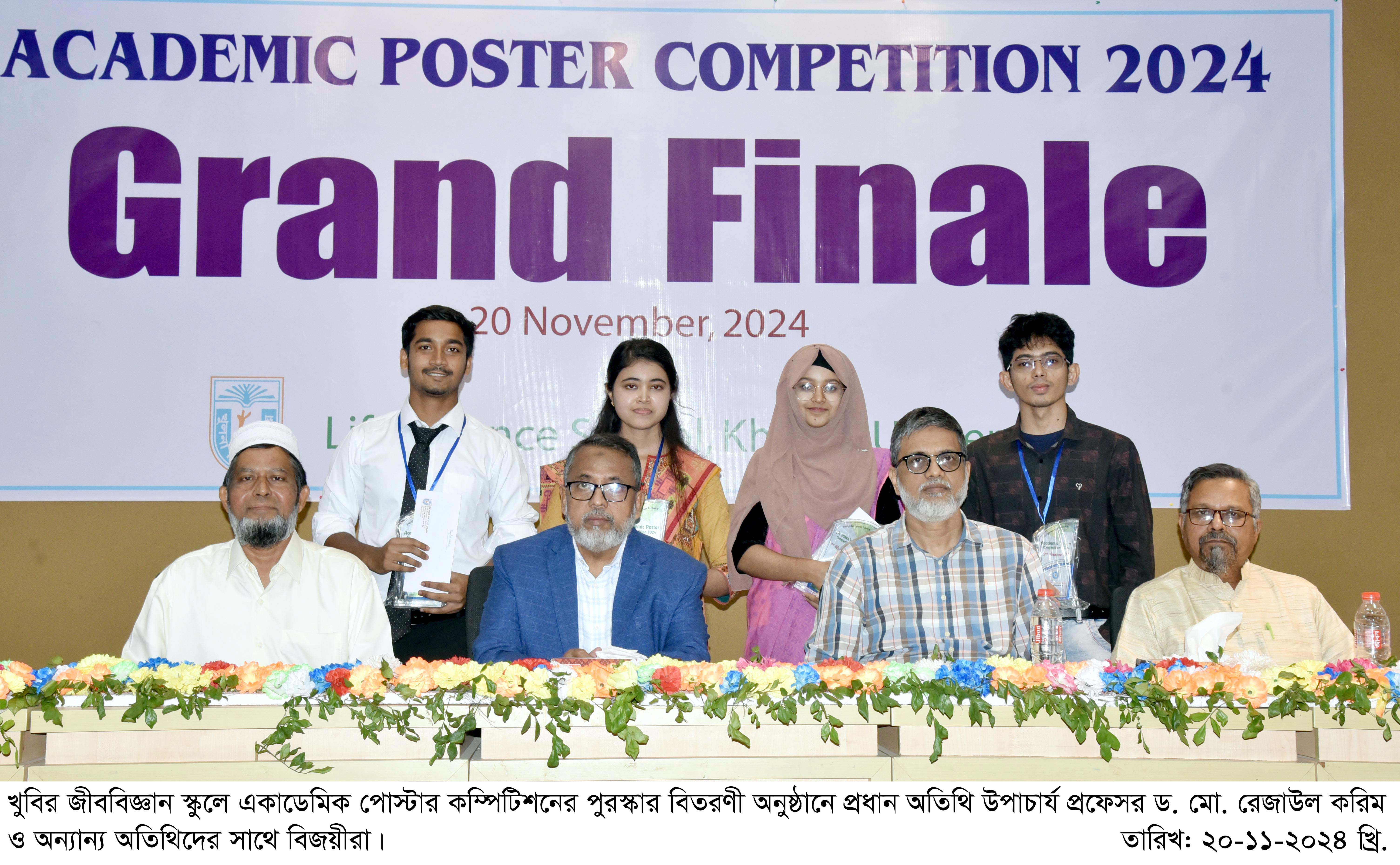 খুলনা বিশ্ববিদ্যালয়ের জীববিজ্ঞান স্কুলের ‘একাডেমিক পোস্টার কম্পিটিশন-২০২৪’ এর চূড়ান্ত পোস্টার প্রদর্শনী আজ বুধবার (২০ নভেম্বর) দুপুর ২টা থেকে ৩.৩০ মিনিট পর্যন্ত আচার্য জগদীশচন্দ্র বসু একাডেমিক ভবনের ৩ তলার করিডোরে অনুষ্ঠিত হয়। সংশ্লিষ্ট স্কুলের সকল ডিসিপ্লিনের শিক্ষার্থীদের গবেষণাভিত্তিক যোগাযোগের সক্ষমতা বৃদ্ধির উদ্দেশ্যে এ প্রতিযোগিতা আয়োজন করা হয়। প্রতিযোগিতা শেষে বিকাল ৪টায় প্রধান অতিথি হিসেবে বিজয়ীদের মাঝে পুরস্কার বিতরণ করেন উপাচার্য প্রফেসর ড. মো. রেজাউল করিম।