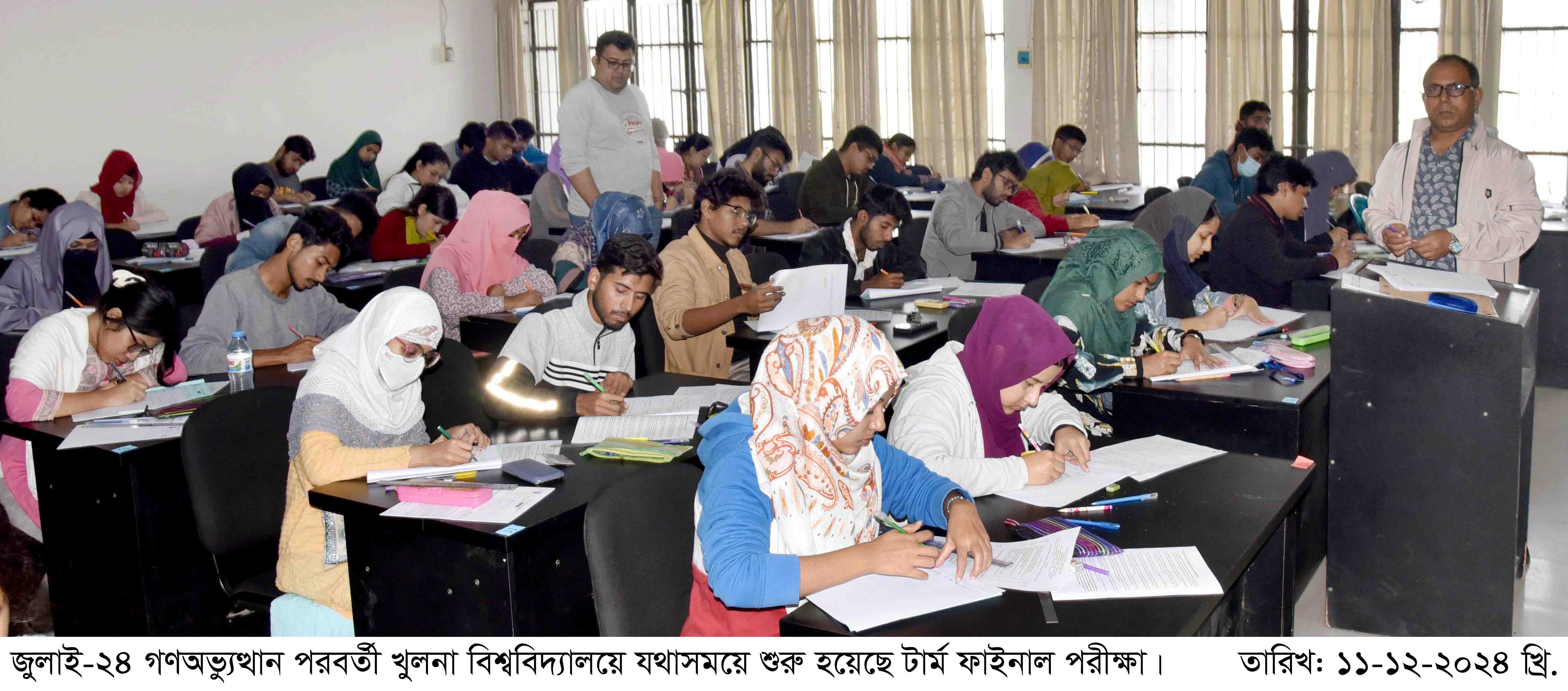 জুলাই-আগস্টের গণঅভ্যুত্থান পরবর্তী পরিস্থিতির পরে খুলনা বিশ্ববিদ্যালয়ে নির্ধারিত সময়েই শুরু হয়েছে টার্ম ফাইনাল পরীক্ষা। আজ বুধবার (১১ ডিসেম্বর) সকাল ৯টা থেকে বিশ্ববিদ্যালয়ের ২৯টি ডিসিপ্লিনের ২০২৩-২০২৪ শিক্ষাবর্ষের (২৩ ব্যাচের) ২য় বর্ষ টার্ম-১, ২০২২-২০২৩ শিক্ষাবর্ষের ২য়, ৩য়, ৪র্থ ও ৫ম বর্ষের ২য় টার্ম এবং ২০২৩-২০২৪ শিক্ষাবর্ষের মাস্টার্স ২য় টার্মের পরীক্ষা শুরু হয়। এ পরীক্ষা আগামী ০২ জানুয়ারি পর্যন্ত চলবে।