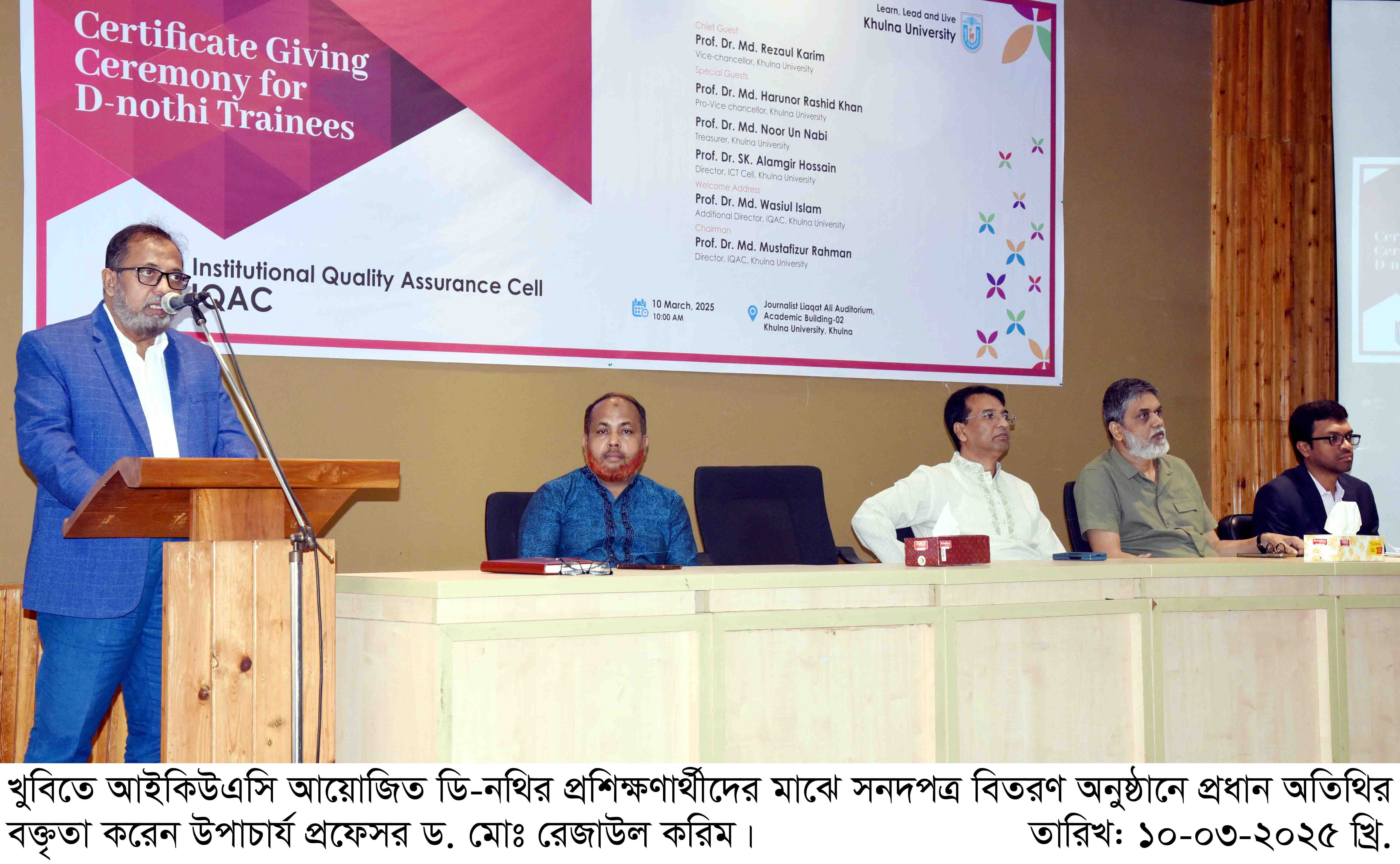 খুবিতে ডি-নথির প্রশিক্ষণার্থীদের মাঝে সনদপত্র বিতরণ