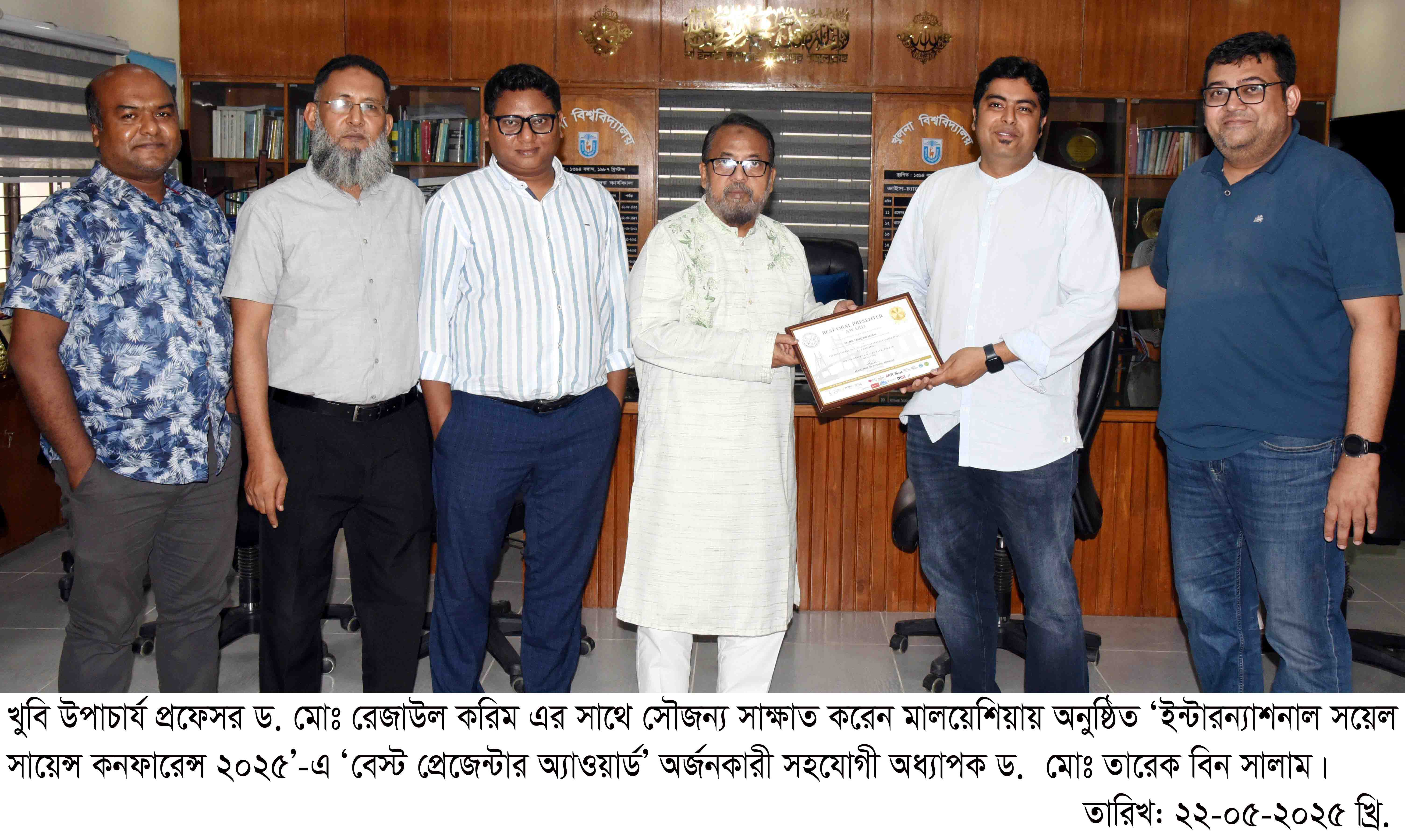 সৌজন্য সাক্ষাৎ করে অ্যাওয়ার্ডপ্রাপ্তির বিষয়ে অবহিত করেন। এ সময় উপাচার্য