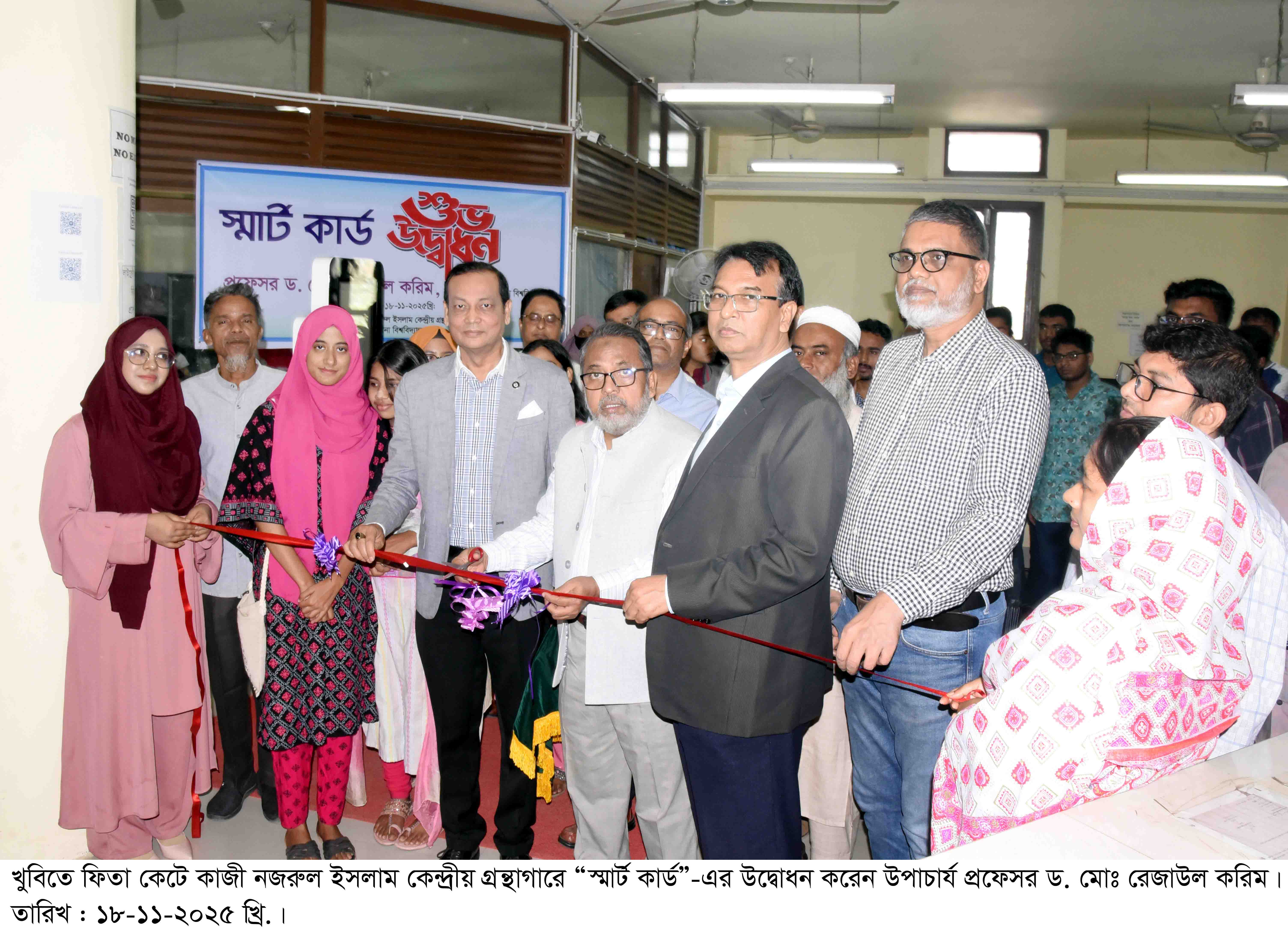 খুলনা বিশ্ববিদ্যালয়ের কাজী নজরুল ইসলাম কেন্দ্রীয় গ্রন্থাগারে স্মার্ট কার্ড ও বুক রিটার্ন স্টেশন উদ্বোধন করা হয়েছে। আজ ১৮ নভেম্বর (মঙ্গলবার) বেলা ১১টায় ফিতা কেটে এর উদ্বোধন করেন উপাচার্য প্রফেসর ড. মোঃ রেজাউল করিম।