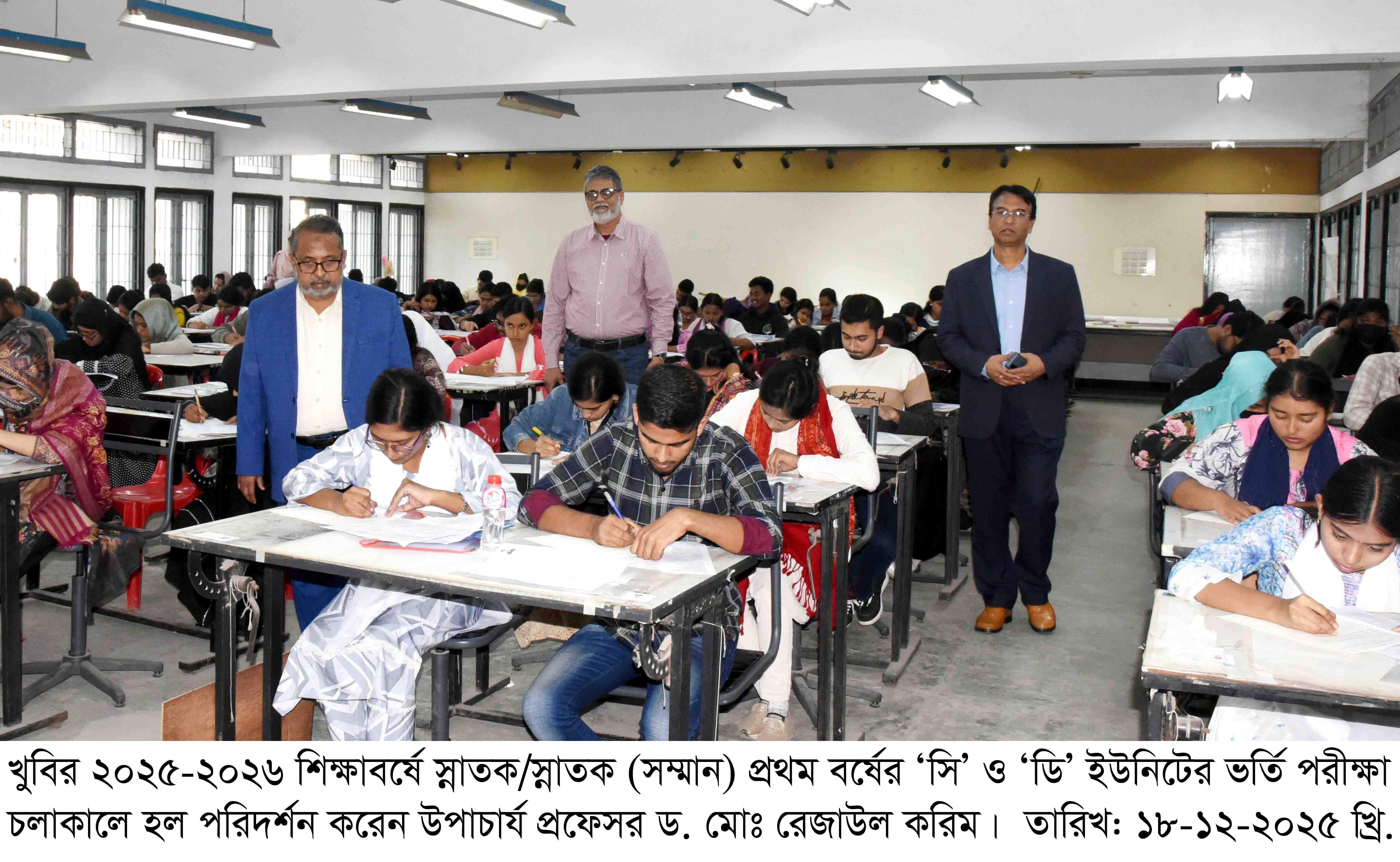 খুলনা বিশ্ববিদ্যালয়ে (খুবি) ২০২৫-২০২৬ শিক্ষাবর্ষে স্নাতক/স্নাতক (সম্মান) প্রথম বর্ষের ভর্তি পরীক্ষার প্রথম দিনে ‘সি’ ও ‘ডি’ ইউনিটের পরীক্ষা সুষ্ঠু ও শান্তিপূর্ণভাবে অনুষ্ঠিত হয়েছে।