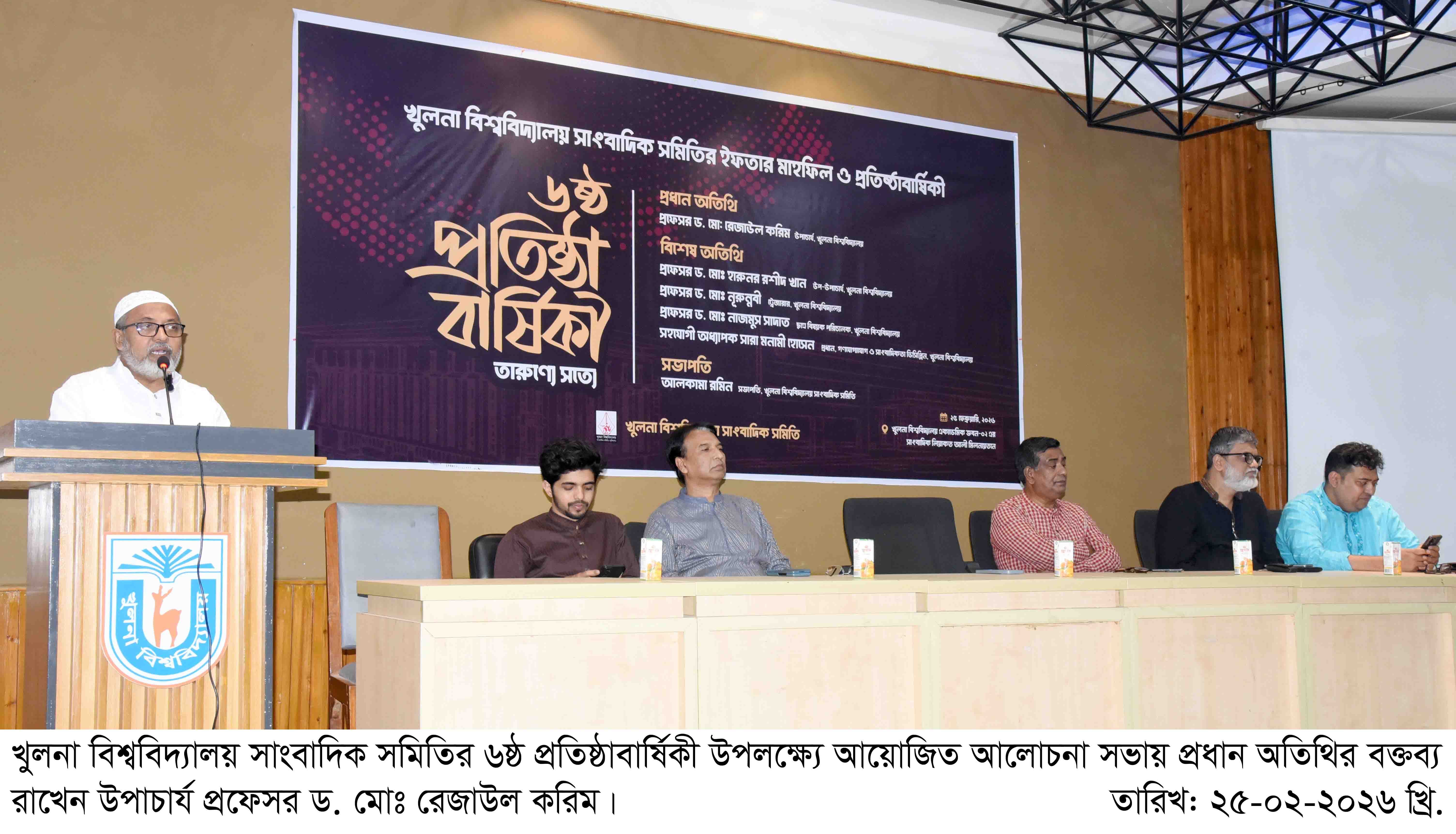 বিশেষ অতিথি হিসেবে বক্তব্য রাখেন উপ-উপাচার্য প্রফেসর ড. মোঃ হারুনর রশীদ খান, ট্রেজারার প্রফেসর ড. মোঃ নূরুন্নবী, ছাত্র বিষয়ক পরিচালক প্রফেসর ড. মোঃ নাজমুস সাদাত, গণযোগাযোগ ও সাংবাদিকতা ডিসিপ্লিনের প্রধান সারা মনামী হোসেন এবং খুলনা প্রেসক্লাবের আহ্বায়ক এনামুল হক।